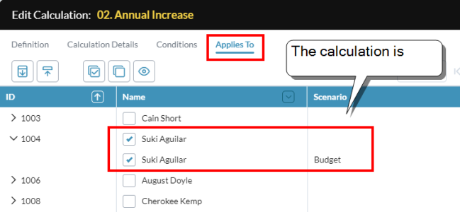 Tip: To apply the calculation to more than one scenario, duplicate the calculation and in the copy select another scenario.