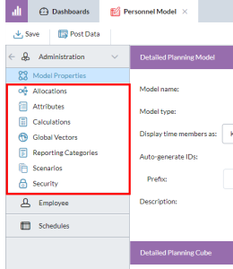 In the Detailed Planning Model section, you can manage some basic attributes of the model (except for Model type, which cannot be changed).