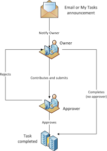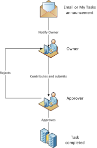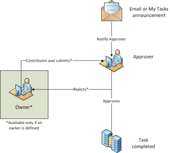 Assigns either data-entry templates or reporting templates to users to approve data. Optionally, you can add an owner or alternate owner to the task; doing so means that the approver has the chance to reject the data (which has been imported from outside the workflow). If the approver rejects the data, the owner receives the task, makes changes to the data, and submits the changes to the approver. The approver can again reject the data, or approve it and thus complete the task.