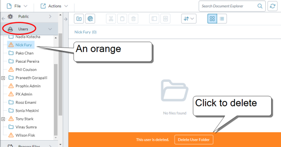 You can restore deleted files and folders to users, or delete the files/folders permanently.