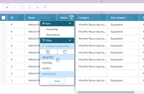 1. Select one or more entries (Status must be Saved and/or Unposted).