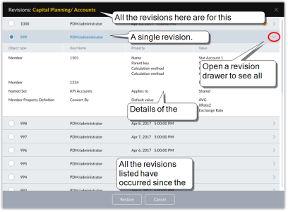 The Revisions dialog opens.